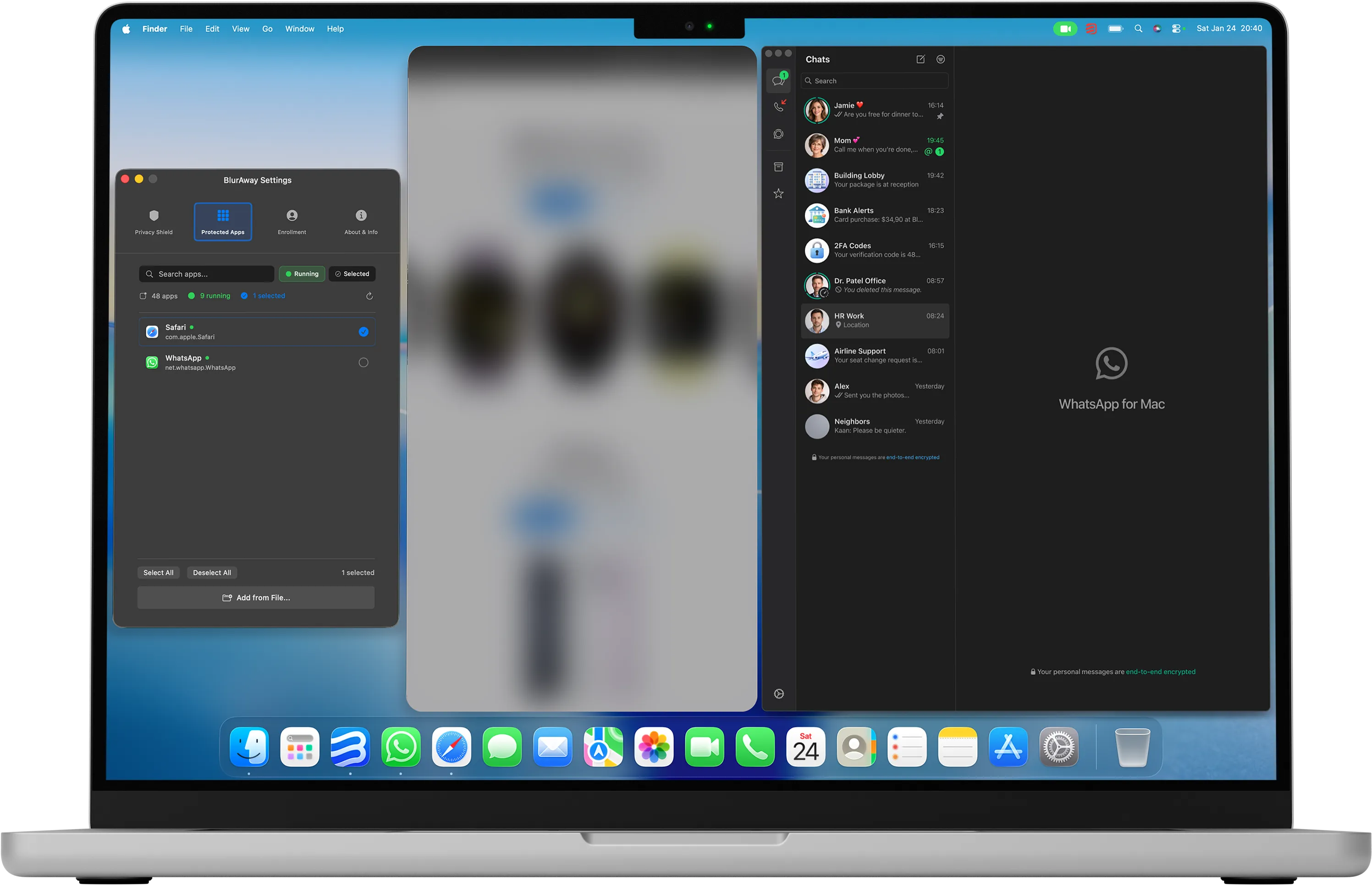 You pick the apps during setup. BlurAway watches those apps and protects their windows automatically.