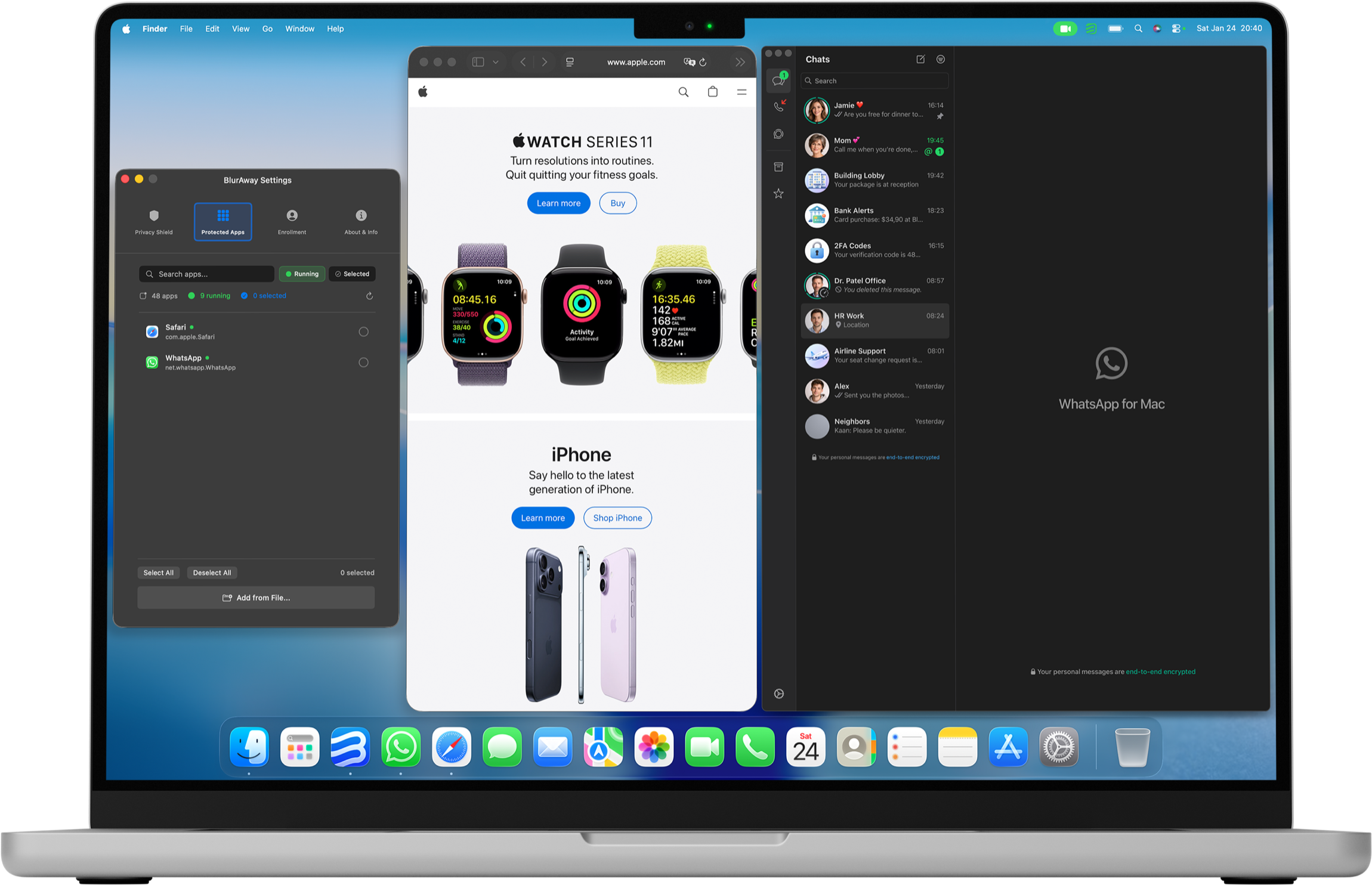 You pick the apps during setup. BlurAway watches those apps and protects their windows automatically.